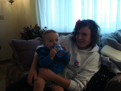 | Aunt Ashlynn and Tagg, he's getting so good at drinking from his cup. |